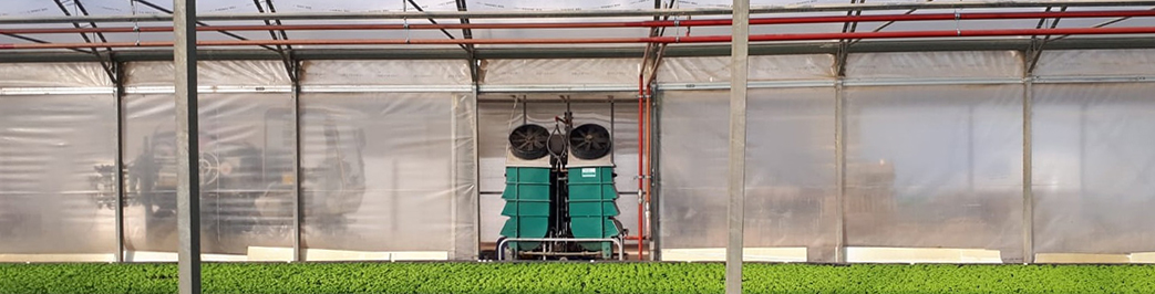 Agam’s Eco Climate Converter (ECC) is a unique, patented greenhouse dehumidification system. It is also known as a ventilated latent heat converter, designed to take excess humidity and convert it into heat and water by blowing air through a special hygroscopic brine in a compact cooling tower.